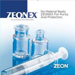 ZEON’s Zeonex® and Zeonor® cyclo olefin polymer (COP) allow for advanced, break-resistant syringes, vials and lyophilization containers for protein-based biopharmaceuticals, high viscosity drugs, and contrast media.